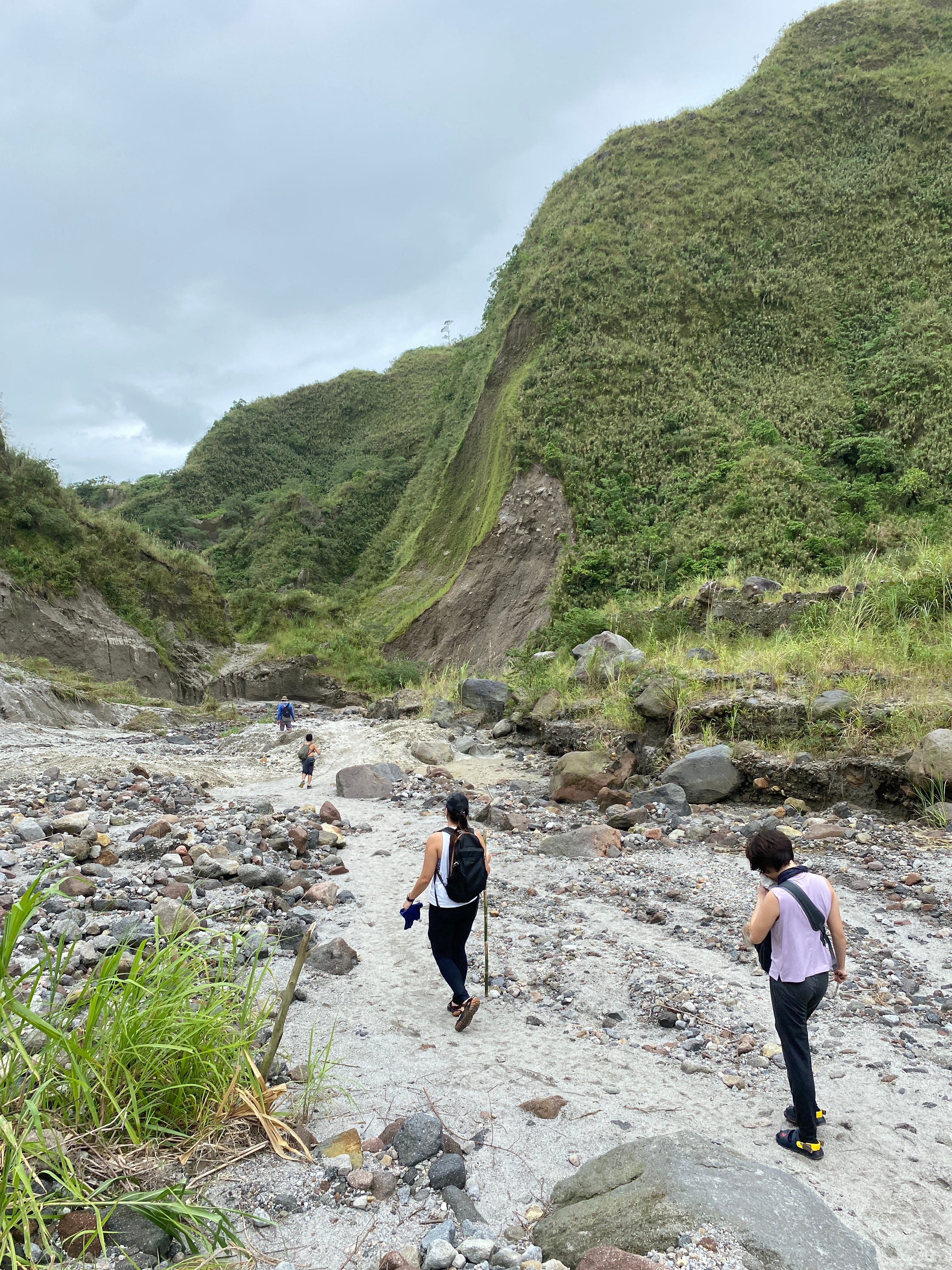 At 7:30am, an hour and a half since leaving Alvin and Angie’s place, we reached the parking spot for the vehicles. This is also where the hike going to the crater technically starts. It was mostly lahar-filled valleys with a mix of gravel and river crossings from here. If you’re used to walking on uneven and badly maintained sidewalks in Metro Manila, you’ll be fine. As for me, my already-bad lower back was just grateful for those bamboo sticks we bought earlier.